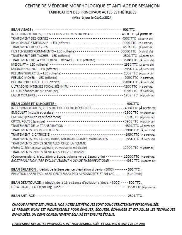 Tarifs médecine esthétique et tarifs épilation laser